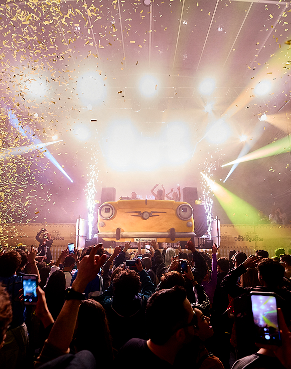 The Domingueros se presentó al gran público en 2019 en la emblemática Plaza de Toros de Las Ventas (Madrid). Su apuesta por artistas de primer nivel internacional, espacios icónicos y una cuidada puesta en escena lo ha convertido en una de las referencias de la escena electrónica madrileña.